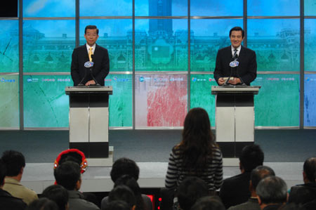 中新網(wǎng)2月28日電 馬英九、謝長廷在第一場電視辯論中,主辦單位依照兩陣營提供的身高,特制了一塊板子給身高比較小的謝長廷,不過最后在屏幕上看起來卻是謝長廷比較高,這讓將要辦政見會的“中選會”還特地再打了一次電話,確認(rèn)馬謝兩個人的高度。