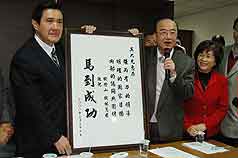 馬英九訪"臺聯"秘書長 錢橙山送"馬到成功"(圖)