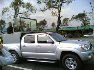 據(jù)臺(tái)灣“中廣新聞網(wǎng)”報(bào)道,由馬英九陣營自行訂制的“防彈掃街車”,四千八百毫升的排量,配備加厚鋼板、防彈玻璃,造價(jià)至少二百萬元新臺(tái)幣;車身經(jīng)過改裝,方便馬蕭二人站立車上時(shí),也能沿街和選民揮手致意、甚至彎腰和選民握手,進(jìn)行近距離接觸。