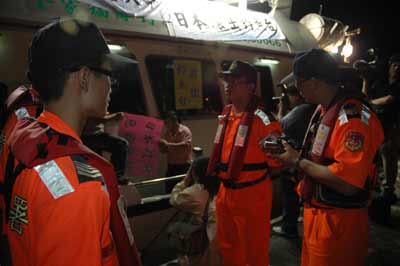 據“中央社”報道,包括臺北縣永和市民代表黃錫麟在內的12名保釣人士以及30名記者,15日深夜搭漁船前往釣魚島“宣示主權”。依據海巡單位掌握的情資表示,保釣船只在清晨4時55分進入釣魚島12海里范圍內,但隨后在5時25分遭到日本海上保安廳艦艇PS-11以及PS-204攔阻。