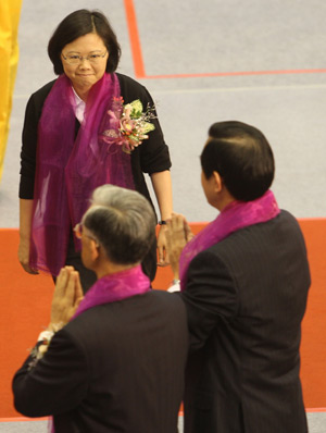 臺灣TVBS報道說,馬英九和帶領民眾上街的民進黨主席蔡英文今天意外在宗教場合同臺,兩人同臺互動不多。儀式進行中,唯一在鏡頭前互動的機會,就是蔡英文就坐前這一幕,馬英九點點頭,不過蔡英文似乎沒看見,直接坐了下來。