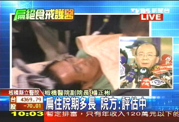 板橋醫院副院長楊正彬說:“(陳水扁)身體雖然有改善,但還是虛弱,而且陳水扁依然不想進食,至于會住院多久,我們會有專業的評估,也會和臺北看守所有密切聯系!