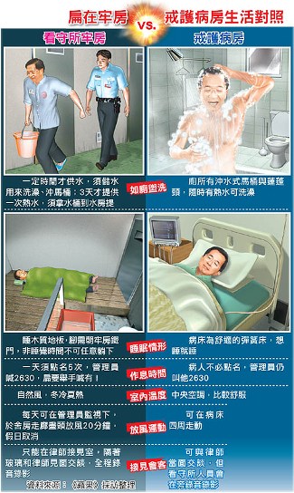 陳水扁在看守所與戒護(hù)病房生活對(duì)比(來(lái)源:臺(tái)灣《蘋果日?qǐng)?bào)》)
