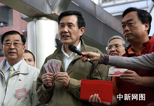 中新網1月18日電 據臺灣TVBS報道,臺當局為了拼經濟,在今天(18日)發放3600元新臺幣的消費券,而身為家中戶長的馬英九,今天上午代表馬家人前往,戶籍地附近的發放所,領取消費券。