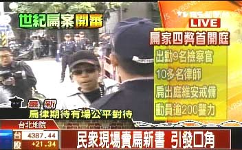 中新網1月19日電 據臺灣TVBS報道,19日上午9點半,針對龍潭和南港二大弊案進行準備程序庭,6名檢方激戰3位律師。一開庭扁律師提出三策略,卻全遭法官蔡守訓當庭駁回,后來檢察官當庭追加罪嫌,引發律師不滿,現場爆發雙方口角。