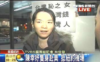 陳幸妤抵達紐約時候,機場有一對夫婦前來抗議,高舉著海報上面寫著“臺灣恥之女,請把臺灣錢,還給臺灣人”,隨后這對夫妻就被機場航警帶離現(xiàn)場。
