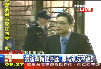 中新網(wǎng)3月17日電 據(jù)臺灣TVBS報道,臺北地方法院17日上午審理機要費案,傳喚前后任前陳水扁辦公室主任馬永成跟林德訓(xùn),而今天也是兩人最后一次準(zhǔn)備程序庭,下一次將進(jìn)行實質(zhì)審理。上個月的準(zhǔn)備庭中,馬林二人申請與扁任內(nèi)出納陳鎮(zhèn)慧等11位證人對質(zhì),陳鎮(zhèn)慧要在上午與馬林對質(zhì),下午跟吳淑珍對質(zhì)。