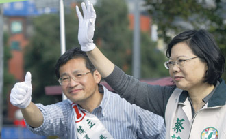 民進黨主席蔡英文與黨籍市議員則陪同周柏雅街頭拜票,她說,藍綠差距正快速縮小,她對周柏雅的選情樂觀。