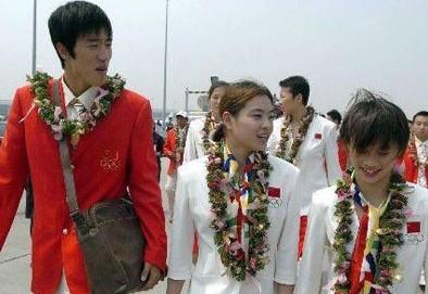吳敏霞、李婷:2004年,中國內地奧運金牌代表團香港行期間,劉翔與跳水名將吳敏霞、李婷有說有笑的走出香港國際機場。