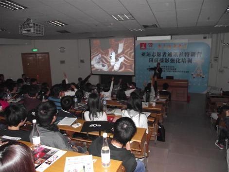 31日下午,所有學(xué)員返回廣州,在中山醫(yī)學(xué)院進(jìn)行了攝影強(qiáng)化培訓(xùn)。資深攝影記者為通訊社同學(xué)進(jìn)行了攝影技巧培訓(xùn),現(xiàn)場氣氛十分熱烈。
