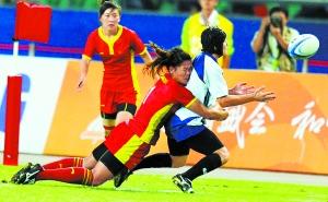 中國隊員孫婷婷死死抱住球,敏捷地閃開強壯的“追兵”,一路狂奔沖過底線。只要她將球按在地上,中國隊就能在最后時刻反超對手,奪得亞運會女子7人制橄欖球的冠軍。就在全場觀眾開始振臂歡呼時,孫婷婷手中的球卻掉落在地——根據規則,此球不得分。中國隊今天最終以14比17不敵哈薩克斯坦隊,獲得亞軍。