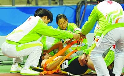 23日晚,廣州亞運會田徑比賽進入第三日爭奪,在男子4×400預賽中,伊朗選手阿漢加里因發力過猛,接力棒打在了“要害部位”,隨后被送往醫院救治。木 易