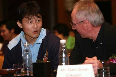 左圖:和埃里克森聊得如此投機,不知道回英超后孫繼海能否打上主力。
