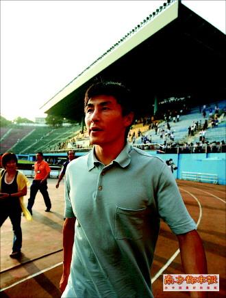 當下半場進行到15分鐘的時候,一名身穿藍色T恤的高個男子出現在運動場的入口,場邊的球迷們眼尖,一眼就認出是李瑋峰,看臺上一陣鼓噪。李瑋峰信步走上主席臺和他熟悉的記者打著招呼,然后一頭鉆進冷氣VIP包廂之中,靜靜地看著場中進行的比賽。這個時候新東家武漢隊處在落后之中,苦無追平的辦法。