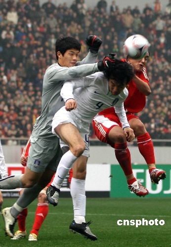 中新社重慶二月十七日電(郭晉嘉 黃金婷) 二00八東亞足球錦標(biāo)賽今天下午在重慶正式拉開(kāi)戰(zhàn)幕。剛剛結(jié)束的揭幕戰(zhàn)中,誓言要打破“恐韓”魔咒的中國(guó)男足再次遭遇“黑色三分鐘”,在終場(chǎng)約三分鐘被韓國(guó)隊(duì)攻入制勝一球,二比三惜敗于太極虎,延續(xù)“逢韓不勝”的尷尬局面。