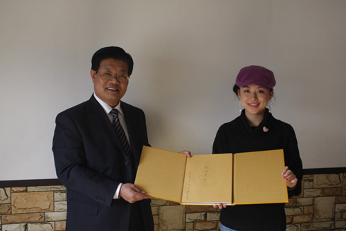 “九球天后”接過興隆塔文冊。