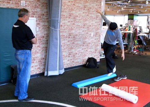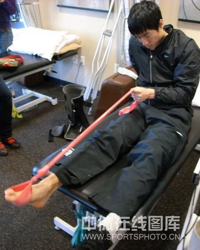 2008年12月20日,術(shù)后的劉翔在休斯頓進(jìn)行康復(fù)訓(xùn)練。