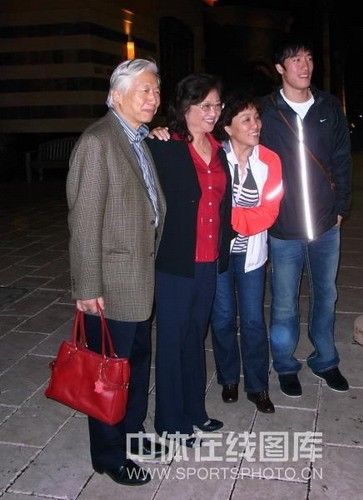2008年12月25日,劉翔(右一)及媽媽和朋友在休斯頓合影。