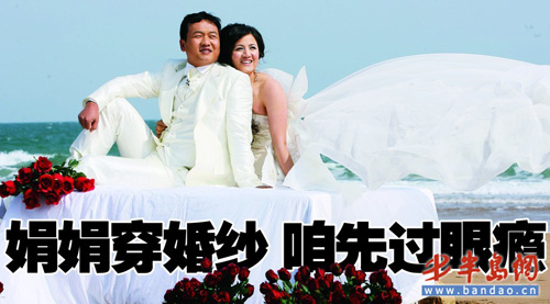 3月29日至30日,為青島奪得首枚也是至今唯一一枚奧運金牌的張娟娟,攜老公薛海峰忙里偷閑回青拍攝婚紗照。本報記者全程跟蹤采訪了兩位國家射箭隊名將。從賽場上走下來的這對小夫妻不僅平易近人而且十分逗樂。張娟娟面對華麗的婚紗顯得興奮又陶醉,而一旁相陪的老公薛海峰由于“審美疲勞”竟然在現場兩度睡著了。