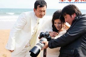 為了排遣等待天晴的無聊時間,張娟娟聽取了店里工作人員的建議,趁機挑選婚禮服。雖然口口聲聲地說被前一天的拍攝累壞了,但是一看到為自己準備好的極品婚紗,張娟娟又興奮地進入了試衣間,而她的老公薛海峰照舊老老實實坐在沙發(fā)上等待。“太可怕了!”趁著張娟娟去換另一套衣服,被老婆的N套華麗裙裝轟炸得暈頭轉向的薛海峰悄悄地對記者說:“我已經審美疲勞了。”