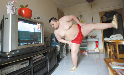 短短4年時(shí)間,體重從70公斤增加到了至少150公斤,沙坪壩區(qū)陳家灣一胖哥喜歡上了冷門的相撲運(yùn)動(dòng),并打算3年后自費(fèi)前往日本學(xué)習(xí)相撲術(shù),成為一名職業(yè)相撲手。這名“重慶相撲男”的照片一貼上網(wǎng)就成了網(wǎng)絡(luò)紅人。由于重慶的相撲選手只有他一個(gè),一直找不到合適的對手過招,無奈之下,前日晚上,這位紅人在天涯上發(fā)帖,正式邀請一位泰拳選手進(jìn)行一場另類的比賽。