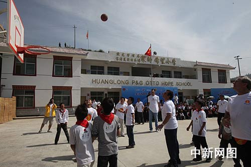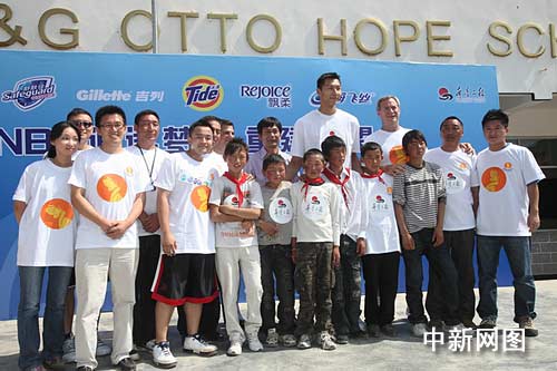 中新網阿壩7月21日電 (魏姝) 7月21日,來自新澤西網隊的NBA球星、中國國家籃球隊隊員易建聯作為慈善大使,來到四川阿壩州松潘縣一所希望小學,與當地小學生一道打籃球,將愛心、夢想與快樂傳遞給災區的孩子們。