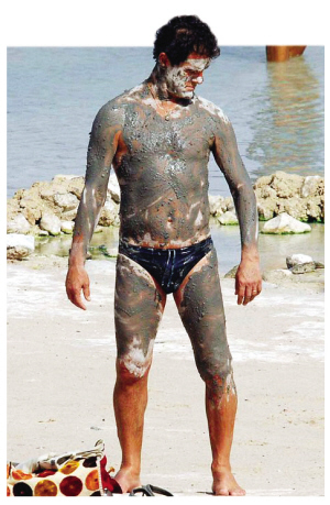 意大利南部小城大多有水溫從32到37攝氏度不等的溫泉,這些景點專門提供一些泥浴治療服務。來這里享受休閑的卡佩羅及其妻子就這樣一不小心落入了記者的鏡頭。與比賽場邊的威嚴姿態(tài)大相徑庭,鏡頭前只穿了一條黑色泳褲的卡佩羅從頭到腳、甚至包括臉部都涂滿了深灰色的泥漿,要不是那一頭標志性的卷發(fā),意大利人的身份還真有些難以“識別”。身邊的勞拉更將泥漿涂抹得辨別不出了比基尼的花色。低頭看看自己身上的“作品”還算令人滿意,63歲的卡佩羅于是走到勞拉身邊,和自己的老婆開起了玩笑。