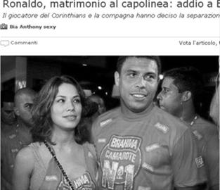 在回歸巴西聯賽后,33歲的羅納爾多在球場上再度煥發了青春,可惜球場得意的他卻再次遇到了情場失意,北京時間凌晨據巴西權威媒體報道,“外星人”目前已經和懷孕8個月的未婚妻瑪利亞·安東妮在一份分居協議上簽了字,兩人的這段緣份可能已經走到了盡頭。