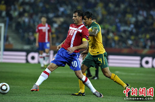 中新網(wǎng)6月24日電 今天凌晨,南非世界杯D組進(jìn)行了最后一輪的較量。塞爾維亞在內(nèi)斯普雷特的姆伯貝拉體育場(chǎng)迎戰(zhàn)澳大利亞隊(duì)。雖然澳大利亞2-1擊敗塞爾維亞隊(duì),但仍然因?yàn)閮魟偾蛄觿?shì)不敵加納,無緣小組出線。