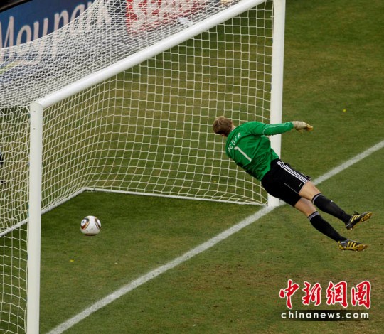 中新社布隆方丹6月27日電 南非世界杯1/8決賽上演英德大戰(zhàn),這場備受矚目的淘汰賽最終以德國隊4比1大勝收場。英格蘭隊上半場一記扳平比分的進球被判無效,主帥卡佩羅賽后怒斥“裁判們犯了最嚴重的一個錯誤”,認為蘭帕德的那個進球被吹掉是比賽的重要轉折點。