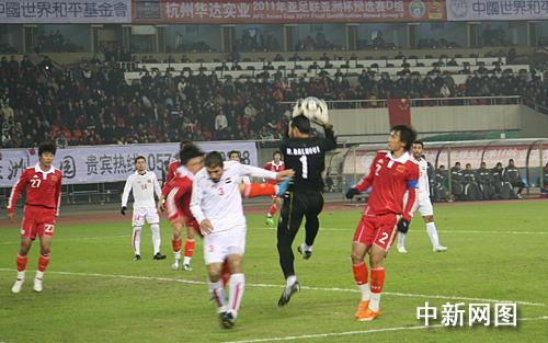中新網1月7日電 昨日傍晚,2011年卡塔爾第15屆亞洲杯預選賽D組第5輪的首場比賽在杭州市黃龍體育場進行,由中國隊主場迎戰敘利亞隊。經過90分鐘的激戰,雙方以0比0互交白卷,攜手晉級。第40分鐘杜威前場送出直塞,邵佳一反越位單刀射門,但浪費了全場最好的一次機會。