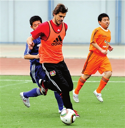 由于球員傷病或去國家隊備戰世界杯,勒沃庫森隊中阿德勒、克羅斯和基斯林等無法來華,不過前德國國腳M·弗里德里希以及辛基維奇、卡斯特羅和黑爾默斯等明星球員均隨隊前來,全隊最大牌的還是德國前國家隊主教練沃勒爾。昨天下午,弗雷德里希等球員來到回民中學,在球場上對學校小球員們進行了技術指導。