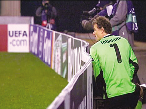 然而在這場比賽中,卻發生了令人瞠目結舌的一幕。原來就在這場生死戰的比賽進行過程中,斯圖加特40歲的主力門將、前德國頭號國門萊曼,突然離開其鎮守的球門,接著翻過球門后的廣告牌,然后迅速選擇一個在裝滿攝像與攝影設備的箱子邊蹲下身,這個可疑且神秘的動作持續了數十秒,萊曼才起身來到球門邊。巧合的是,萊曼剛回到球門前,對方就發動了一次進攻。負責轉播這場比賽的天空體育電視臺的攝像機捕捉到了這一細節,但由于萊曼的動作被箱子擋住,因此無法確切拍攝到萊曼到底在干什么。不過賽后,德國著名的圖片報根據拍攝的照片和錄像回放來分析,萊曼十有八九是突然內急,于是直接在廣告牌下借助箱子的遮擋方便了一下。