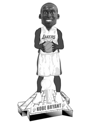 “如果你在為不知道送一個湖人球迷什么禮物而煩惱,別想了,一個身高1米98的‘科比’怎么樣?”這樣的廣告語對任何一個湖人球迷都太有誘惑力了,而且這不是虛假廣告,湖人官網的網上商店正在發售——史上最大的搖頭娃娃紀念品,和真實的科比一樣高的搖頭娃娃。