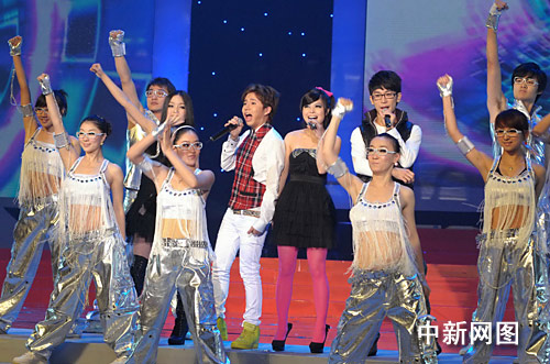 500位大學生組成的變幻方陣化身為“小光立方”,時尚動感,在晚會過程中配合舞美和演出呈現(xiàn)不同的圖案或LOGO。