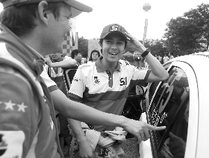 韓寒的支持者顯得更加有組織性,在昨天的發(fā)車(chē)現(xiàn)場(chǎng),記者甚至看到了幾位打著“南京寒迷會(huì)”橫幅的帥哥美女,不過(guò)韓寒似乎有點(diǎn)不太“合作”,直到發(fā)車(chē)儀式即將開(kāi)始的時(shí)候,才出現(xiàn)在自己的賽車(chē)旁,這讓現(xiàn)場(chǎng)的韓迷頗有些失望。