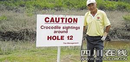 這個倒霉的老人名叫詹姆斯·威塞克,他在這個高爾夫球場第12洞打球時,不幸被草叢里竄出的一只鱷魚咬傷。雖然當即被送往了醫院,但醫生最終也未能保住詹姆斯的胳膊,不得不為他實施了截肢手術。