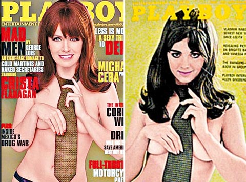中新網7月19日電 當紅美劇《廣告狂人》(Mad Men)中飾演接線生的女角Crista Flanagan,日前化身《花花公子》雜志的封面女郎,重現60年代兩個經典的《花花公子》封面,其中一個造型更以半裸僅打領帶亮相,此造型正是取材自1960年Toni Lacey的11月號封面。
