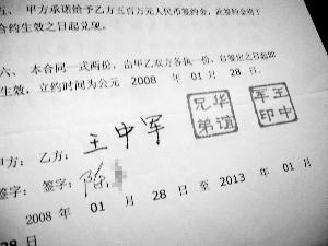 陳先生稱,2008年1月,小陳經人介紹,與華誼兄弟音樂文化傳媒有限公司法定代表人王忠軍簽訂藝人簽約合同書。合同中約定,小陳可獲得一筆500萬元的簽約金,并保證第一年全年的薪酬不低于500萬元。但此后王忠軍找借口一直沒有支付,小陳也在錄了幾首歌曲后就沒有任何演藝活動。王忠軍此后還出具了一份證明,約定將簽約金打給小陳的時間,同樣沒有兌現。在等待了兩年之后,小陳將王忠軍起訴到東城法院。
