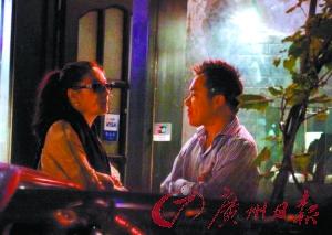 兩人逛了一會兒走到路邊開始聊天,從兩人的表情與滔滔不絕的話題來看,應(yīng)該是相熟已久的老朋友,兩人不時聊得哈哈大笑,可以看到該男子笑起來有一對明顯的酒窩。