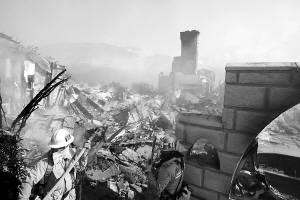 消防員在消滅廢墟中的殘火。圖/CFP