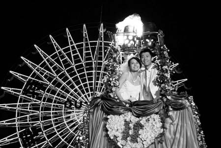 上圖:影片重頭戲——梁詠琪和夏雨熱氣球婚禮的劇照和花絮圖。