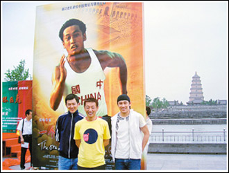 此次,侯詠是和該片主角“劉長春”扮演者李兆林、“關(guān)戎波”扮演者郭家銘一起回西安舉行海報(bào)揭幕活動(dòng)。很多人都知道侯詠是著名攝影師,但不知道侯詠從小就在體校學(xué)打乒乓球,侯詠說:“后來因?yàn)榈昧烁窝祝坏貌粭夡w從文,開始學(xué)習(xí)美術(shù),這次拍奧運(yùn)題材電影,可以說是圓了自己的體育夢。”