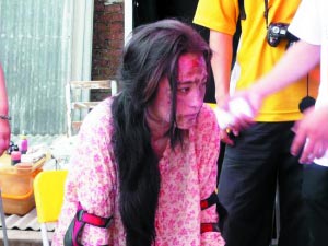 蔣勤勤參演賑災公益短片 滿臉血污(圖)
