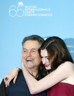 威尼斯當地時間昨天中午,由曾導演《沉默的羔羊》的喬納森·德米執導、“好萊塢公主”安妮·海瑟薇主演的影片《姐姐的盛大婚禮》在威尼斯舉行了全球首映。安妮·海瑟薇以一身紅色的抹胸小禮服裙現身,親昵地依偎在導演喬納森·德米身邊,在媒體面前毫不吝嗇她的標志性微笑。