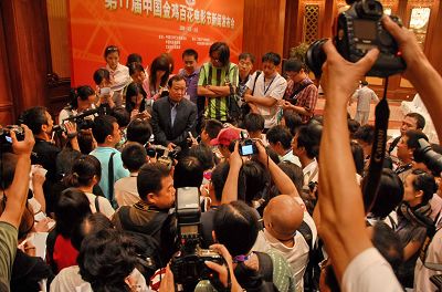 第17屆金雞百花電影節的新聞發布會昨日上午舉行。通常而言,這場發布會是電影節組委會通報電影節工作進度,并接受媒體對于電影節以及評獎工作提出意見和建議的“常規動作”。但因為《滿城盡帶黃金甲》單方面在46年百花獎歷史上首開“退賽”先河,發布會忽而成為昨日最重要的新聞事件。而就在中國電影家協會常務副主席康健民“被迫宣告”《黃金甲》退賽之前,他正在闡述由于存在黑箱操作、惡意投票等問題,近兩屆的大眾電影百花獎才開始“改革”,增設101位現場評委。如今,《黃金甲》又一次“鉆”了百花評選規則的漏洞,康健民承諾說:“我們考慮再修改評選規則,研究‘退出機制’。”