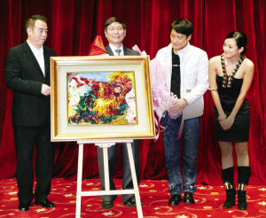 另外,上海京粹藝術(shù)品發(fā)展有限公司總經(jīng)理王嘉沐向劇組贈送了繡品《貴妃醉酒》。這幅根據(jù)著名油畫制作的繡品曾經(jīng)被奧組委作為禮品贈送給外國友人。
