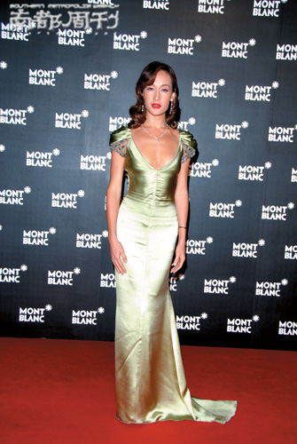 上榜理由:Maggie Q完全知道自己的優勢在哪里,她最擅長的就是展現自己的傲人身段。這件禮服以反光綢緞面料代替去年流行的大金和大銀來形成未來感,是今年流行的大趨勢之一。簡潔而明快的設計,讓她的身體成為時裝的主體,她整個人看起來就像一個發光體!