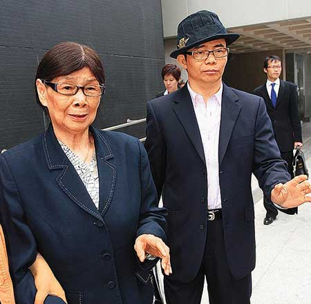 梅艷芳母親覃美金昨由兒子梅明陪同到庭。