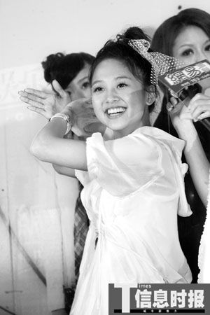 裝可愛是這群小女生的拿手本領,應主持人要求后,MeiMei率先在臉頰邊擺出OK的手勢,再配合微嘟的嘴,十分可愛。走氣質美女路線的Apple則使出“一陽指”功夫,緊貼嘴唇做出“噓”的動作。大牙左右手并上,動作幅度大,謀殺了不少菲林。搞怪的鬼鬼擺出像龜波氣功的姿勢還笑說:“這是翻蓋手機。”而大方的她被問起人氣高是否因為和黑人“同居”(其實只是房東跟房客的關系)時,就立刻流露出羞澀的神態一個勁揮手:“哎呀,不要這么說,他是好哥哥,很照顧我而已。”
